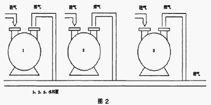 因為多臺泵便用時,壓縮排氣的時間不同步,造成多臺泵之間排氣互相沖擊,不利于水蒸氣的排出,容易產(chǎn)生水垢,因此有必要改造排氣管道。