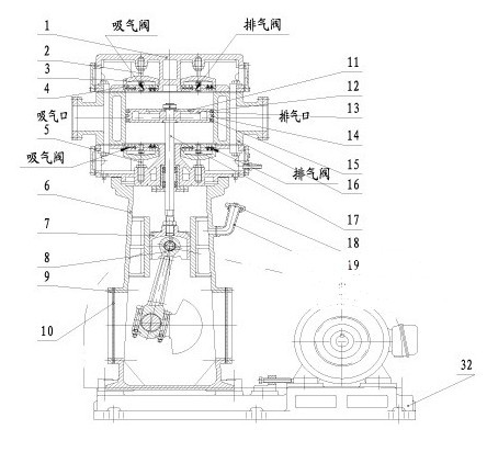 WLW系列無(wú)油立式真空泵主要由機(jī)械傳動(dòng)部分、機(jī)械抽氣部分和隔油部分組成,機(jī)械傳動(dòng)部分分為曲柄和連桿機(jī)構(gòu),由電動(dòng)機(jī)帶動(dòng)皮帶輪,然后通過(guò)曲軸、連桿、十字頭傳遞給活塞,由皮帶輪的圓周運(yùn)動(dòng)變?yōu)榛钊闹本(xiàn)運(yùn)動(dòng)。WLW系列無(wú)油立式真空泵機(jī)械抽氣部分主要依靠活塞在汽缸內(nèi)的往復(fù)運(yùn)動(dòng)來(lái)完成。氣缸內(nèi)的活塞上有活塞環(huán),保證被活塞間隔開(kāi)的氣缸兩端氣密封性。WLW系列無(wú)油立式真空泵活塞在氣缸內(nèi)做往復(fù)運(yùn)動(dòng)時(shí),不斷的改變氣缸兩端的容積,一端容積擴(kuò)大吸入氣體,另一端容積縮小排出氣體。活塞與氣閥的聯(lián)合作用,周期地完成 吸氣和排氣作用。隔油腔及充氣腔將機(jī)械傳動(dòng)部分與氣體流通部分隔開(kāi),以防止油漏入、或帶入氣缸內(nèi)。當(dāng)要求抽吸氣回收時(shí),充氣腔內(nèi)可充入該種氣體。以防止空氣漏入氣缸內(nèi)而影響氣體純度。