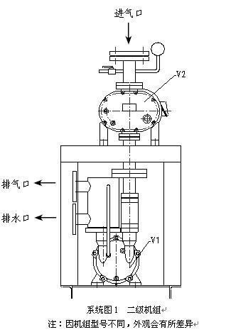 該羅茨水環(huán)真空機(jī)組的主泵為V2型羅茨真空泵,由V1型液環(huán)真空泵作為前級(jí)泵(如系統(tǒng)圖1),為保證各泵的正常運(yùn)轉(zhuǎn),應(yīng)按以下程序操作: