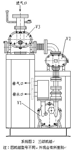 (二)、三級(jí)羅茨水環(huán)真空機(jī)組(羅茨泵+羅茨泵+水環(huán)泵)
