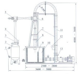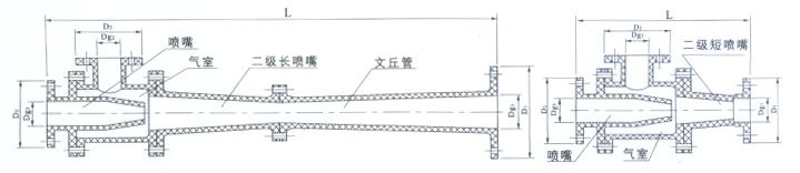 蒸汽噴射泵:文丘里管內襯石墨,泵體為鑄鐵內涂聚三氟氯乙烯(F3)
